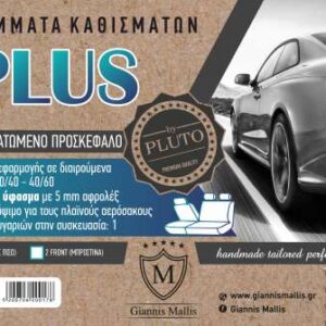 Ο Lux σχεδιασμός σε συνδιασμό με την άριστη ποιότητα και την τέλεια εφαρμογή θα απογειώσει την εσωτερική εμφάνιση του αυτοκινήτου σας. Το καπιτονέ τεχνόδερμα έχει απαλή υφή και είναι ανθεκτικό στη φθορά με υψηλή επιβράδυνση φλόγας και πολύ εύκολο να καθαριστεί. Είναι απλό στην εγκατάσταση και απόλυτα πρακτικό. Σε συνδυασμό με μαξιλάρι λαιμού και οσφυϊκό μαξιλάρι, μπορεί να ανακουφίσει την κόπωση σας. Καλύμματα ακριβώς στα μέτρα του κάθε αυτοκινήτου με ειδικές προβλέψεις για πλευρικούς αερόσακους, για ζώνες καθισμάτων και ειδικούς μηχανισμούς ώστε μετά την τοποθέτηση να μην περιορίζουν καμιά λειτουργία του αυτοκινήτου σας και να δείχνουν σαν αυθεντική ταπετσαρία. Τα χαρακτηριστικά των καλυμμάτων μας – ύφασμα, σχέδιο, τρόπος ραφής, πρώτες ύλες (σκρατς, φερμουάρ, κορδόνι)- καλύπτουν όλες τις ανάγκες του καταναλωτικού κοινού. Για όλους τους τύπους αυτοκινήτων.Καλύμματα Διεθνή Pluto Plus