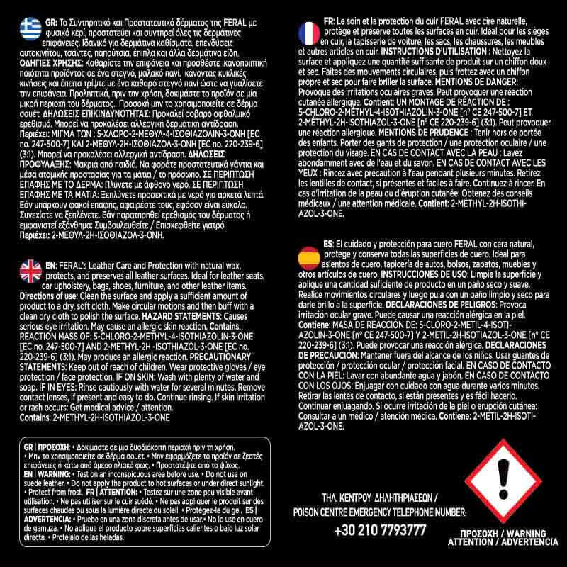 ✅ Για ακόμα καλύτερα αποτελέσματα, συνδυάστε το με το καθαριστικό δερμάτινων επιφανειών Feral Leather Clean.